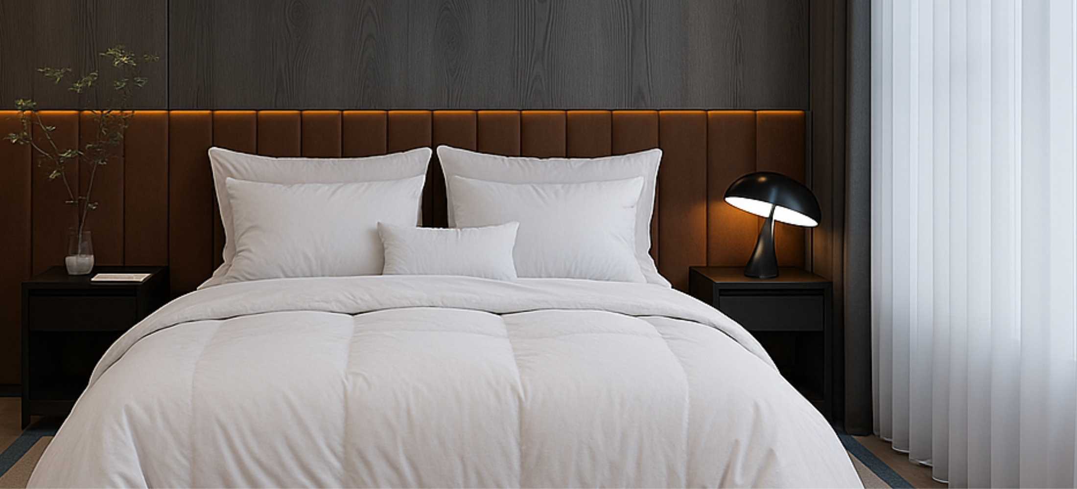 Choose between our German silk shell, woven with a whisper-light touch, or our 500-thread-count long-staple cotton — each enveloping the down in elegance, breathability, and enduring grace.